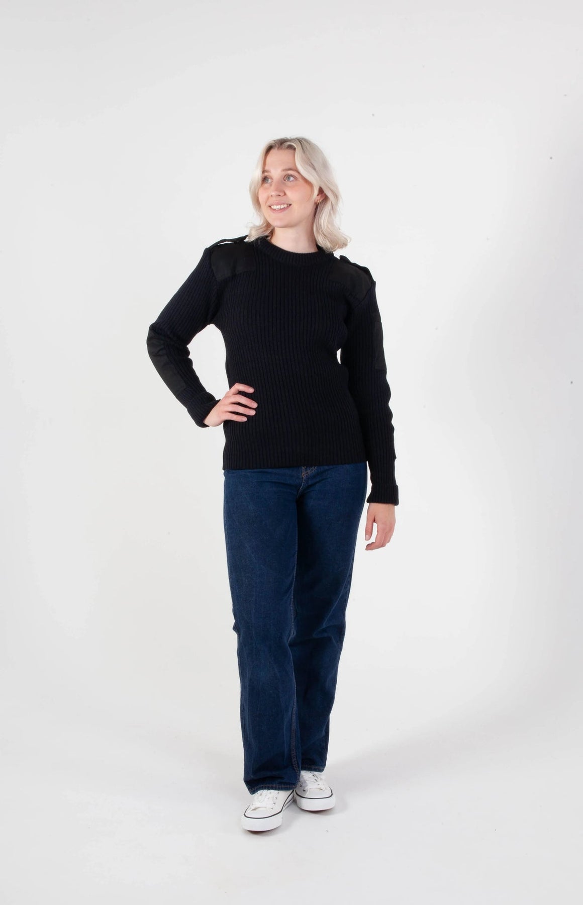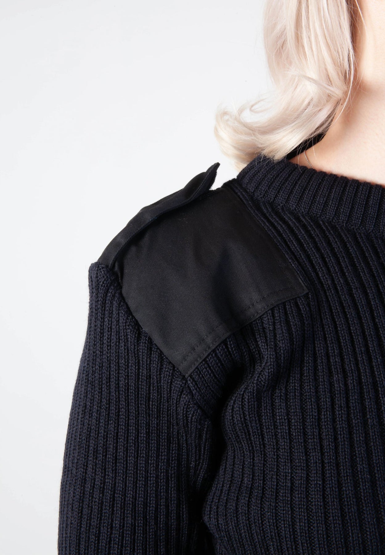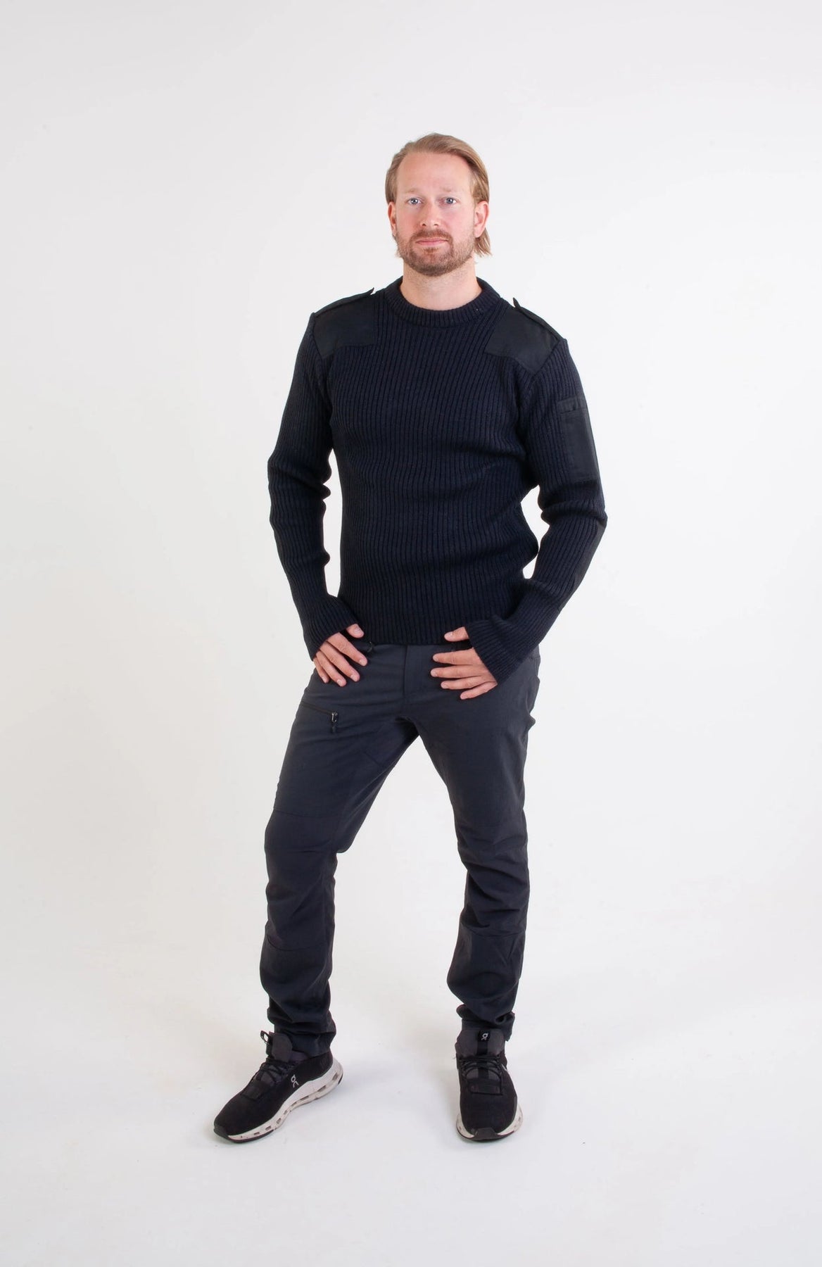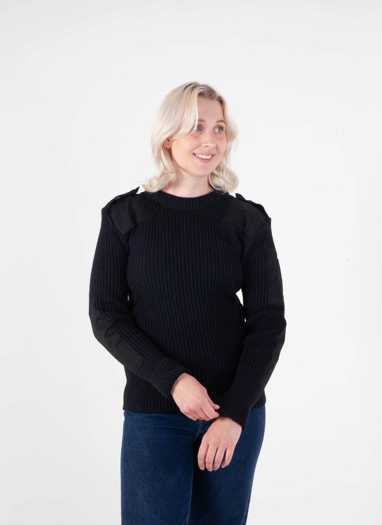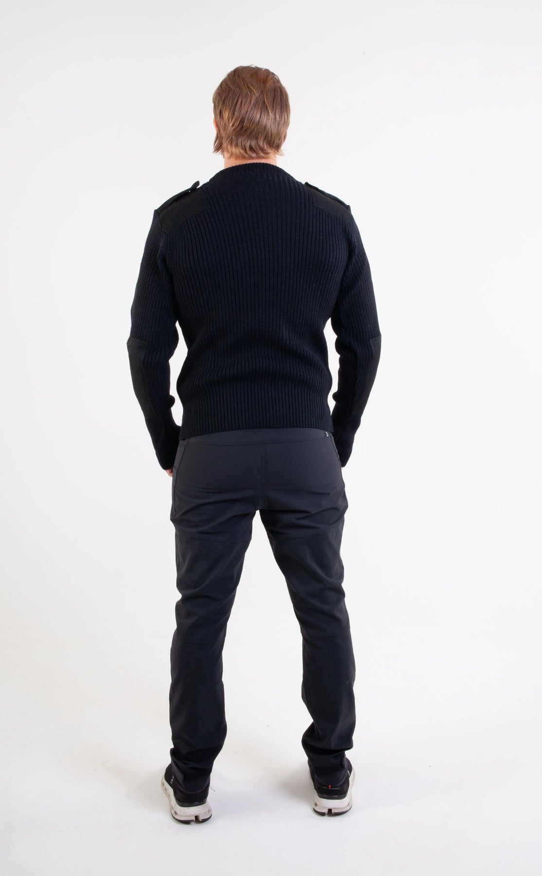 Schwarzer norwegischer NATO-Pullover – Unisex-Wollpullover mit Verstärkungen