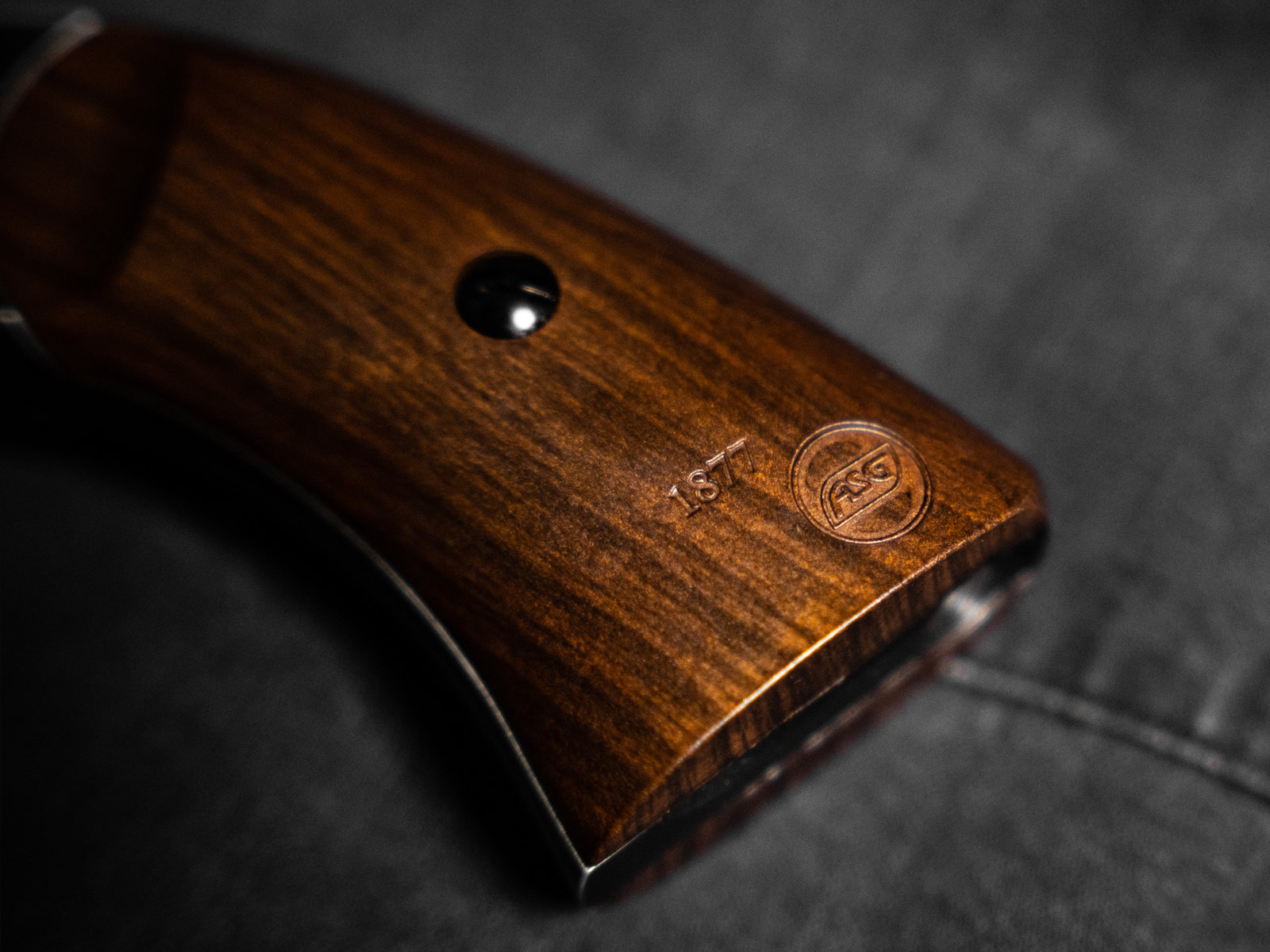 Bringen Sie den losen Handgriff wieder an. Der Revolver ist nun zum Laden der Patronen bereit.