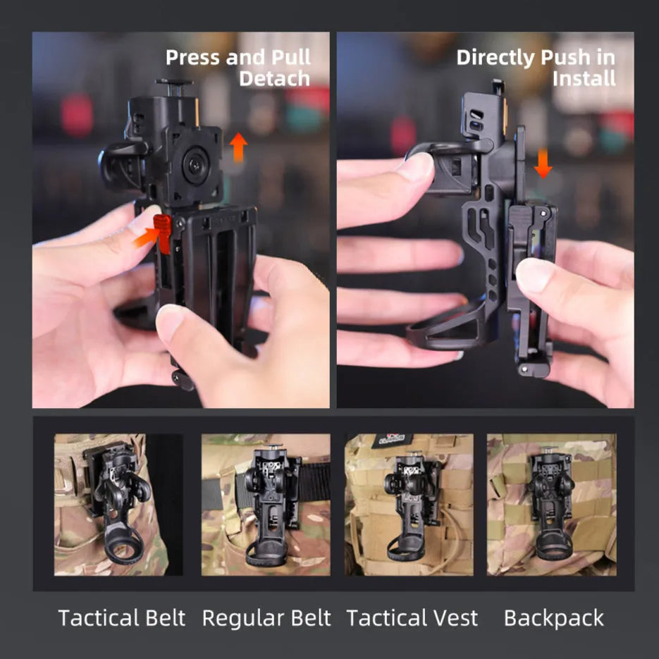 Praktisches Gürtelholster für Klarus-Taschenlampen, das die Taschenlampe leicht zugänglich macht und gut sitzt. Kann am Gürtel und am MOLLE-System befestigt werden.