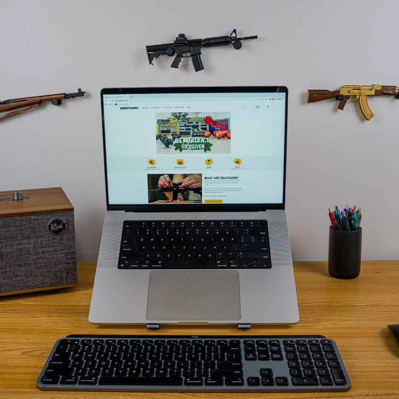Mache jede Wand zu einer stilvollen und funktionalen Ausstellungswand für GoatGuns! Diese Wandmontagehaken werden einfach mit den mitgelieferten 3M Klebepads befestigt.