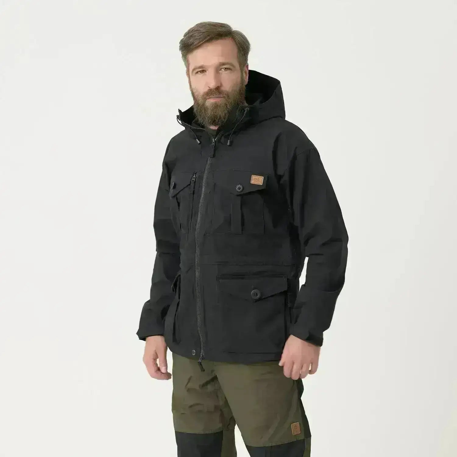 Der SAS Smock von Helikon-Tex ist eine aktualisierte Version der klassischen Militärjacke, die sowohl für den taktischen Einsatz als auch für Bushcraft konzipiert ist. Es besteht aus strapazierfähigem Duracanvas-Material, das für besseren Schutz vor leichtem Regen und Schnee gewachst werden kann. Dieser Kittel füllt die Lücke zwischen zwei Anoraks von Helikon-Tex: der schwereren Pilgrim Jacket und der leichteren Woodsman Jacket. Durch die leichte Konstruktion und die Einstellmöglichkeiten ist die Jacke sehr vielseitig und für alle Wetterbedingungen von Sommer bis Winter geeignet.
