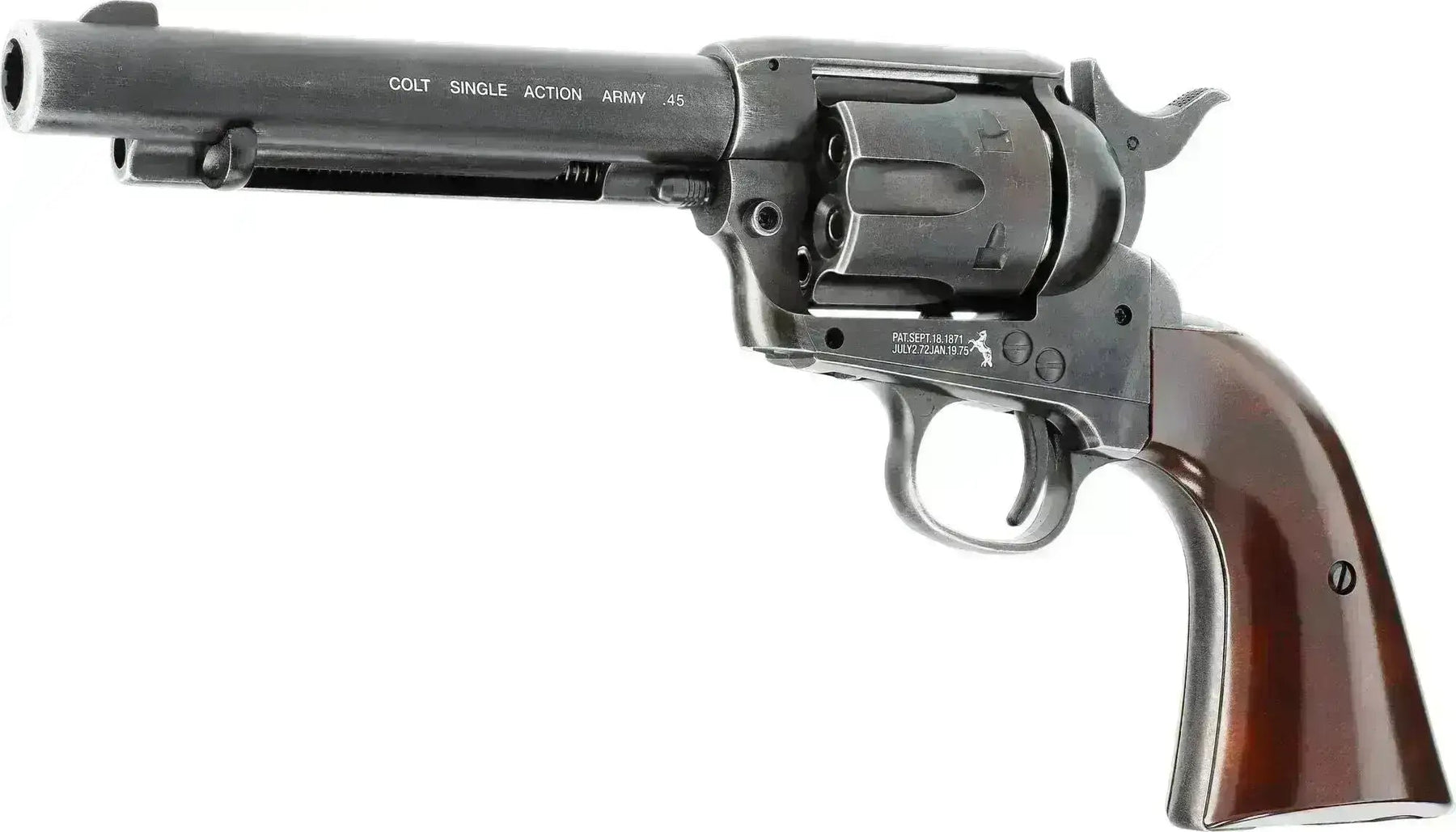 Spannen und Ziehen – Dieser Luftrevolver schießt normale Pellets und hat einen gezogenen Lauf, wodurch er noch präziser ist als die BB-Varianten. Der Colt SAA .45 Peacemaker Luftrevolver eignet sich perfekt zur Dekoration, zum Schießen und als Requisite.