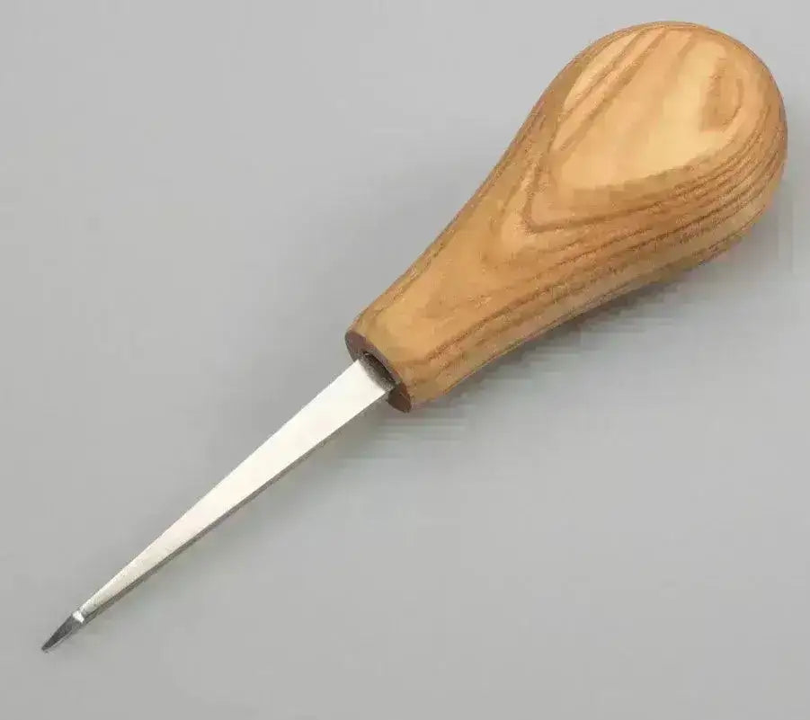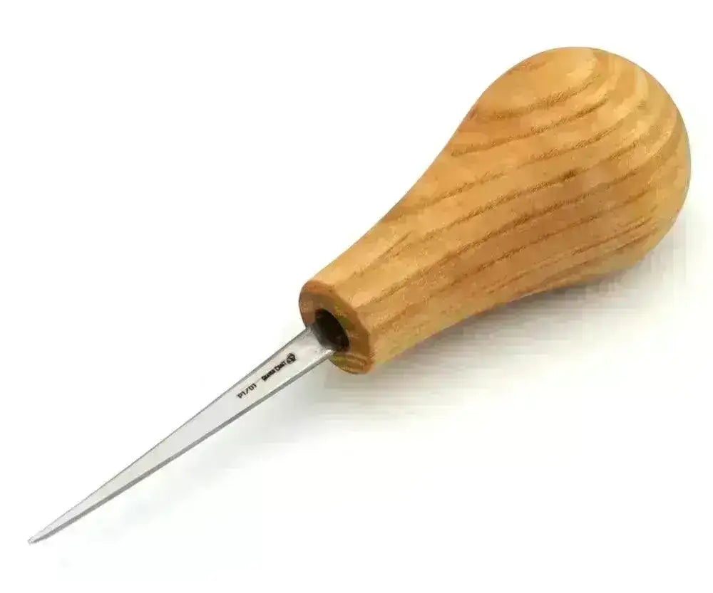 Handgefertigter Meißel/Stechbeitel aus der Ukraine. Das Werkzeug eignet sich perfekt für Holzschnitzprojekte, bei denen es auf Details ankommt. Mithilfe dieses Detaillierungswerkzeugs können Sie das Holz mühelos formen und markieren und wunderschöne Designs erstellen.