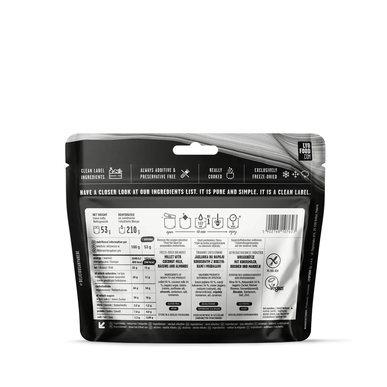 LYOFOOD Millet Payasam – Indian porridge with coconut milk, raisins, and almonds