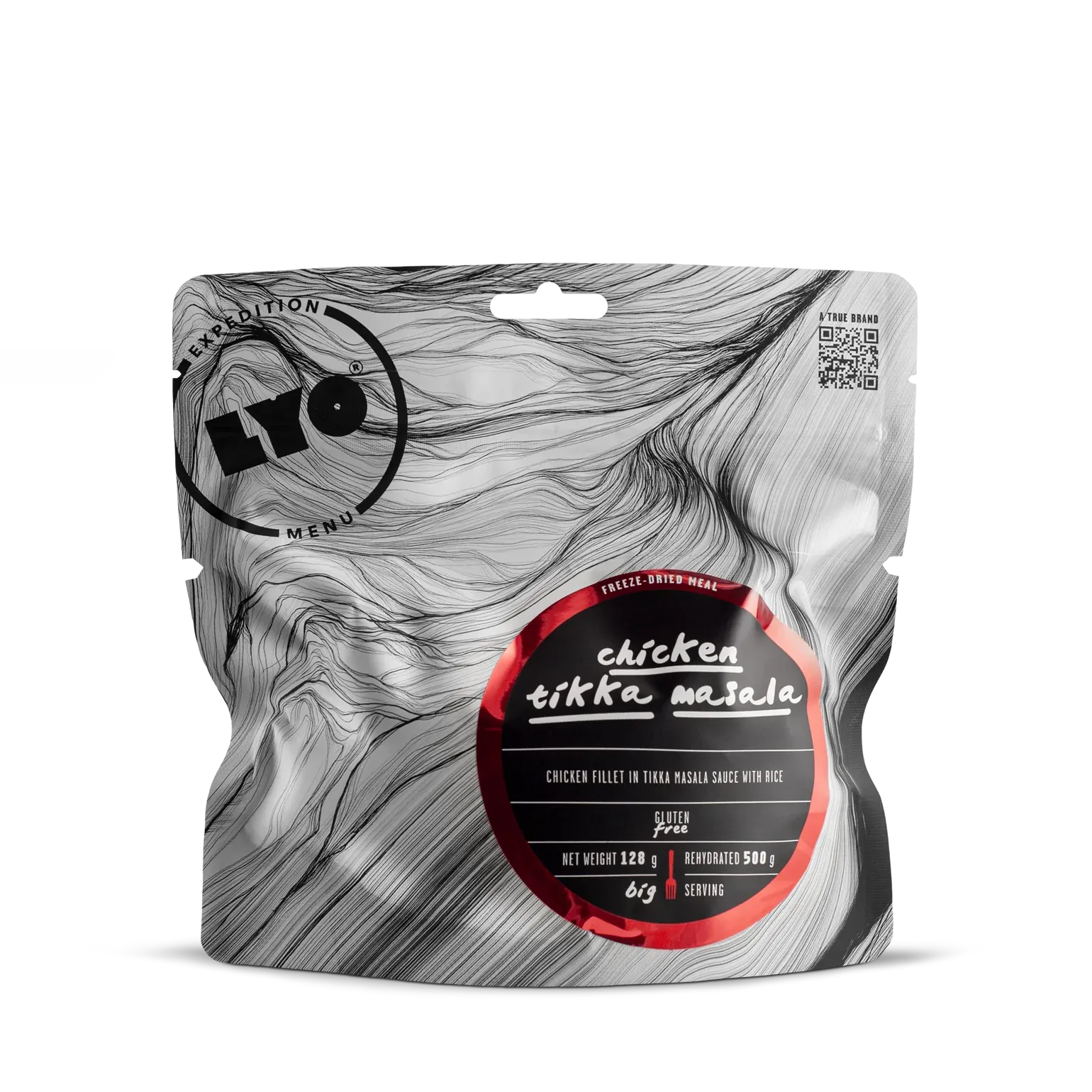 Experience the iconic taste of tikka masala on your adventures! LYOFOOD Chicken Tikka Masala is made from tender chicken pieces, creamy tomato sauce, and traditional Indian spices. 100% natural ingredients, no preservatives, freeze-dried for extremely low weight and long shelf life. Perfect for mountain hikes, expeditions, and camping trips where you want a flavorful and nutritious dinner.