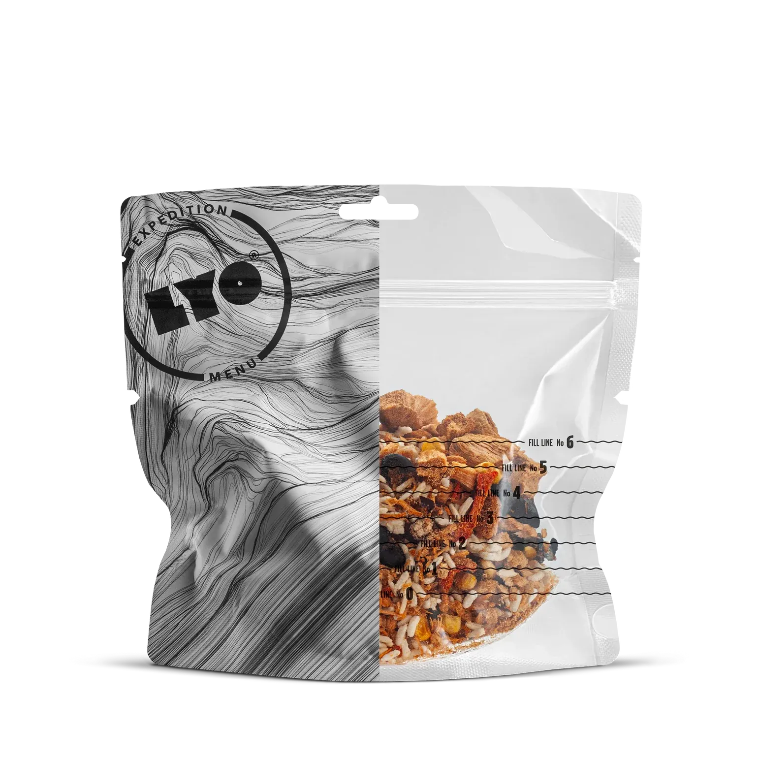 Enjoy a warm and satisfying experience with LYOFOOD Mexican Stew. This freeze-dried dish combines beans, rice, corn, bell peppers, and spicy tomato sauce to bring you authentic Mexican flavors on your journey. 100% natural ingredients, no artificial additives, low weight, and long shelf life. Perfect for mountain hikes, expeditions, and camping trips where you want good food made easy.