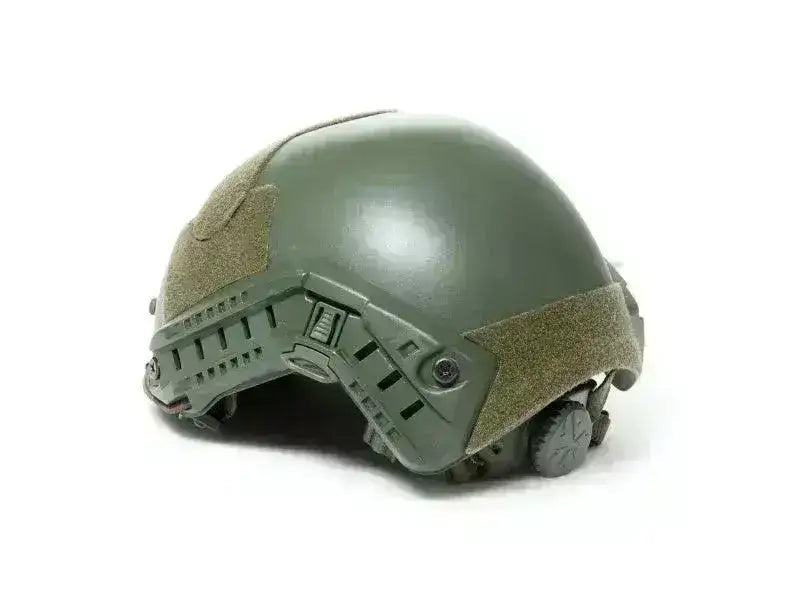 There are a multitude of options for attaching accessories to the helmet. With rails on both sides, you can mount a lantern, laser, camera or glasses here. It comes with various brackets to attach different equipment. At the front of the helmet there is also an attachment for NVG, night vision goggles. This is stabilized with two elastics, to make it more comfortable to walk with.