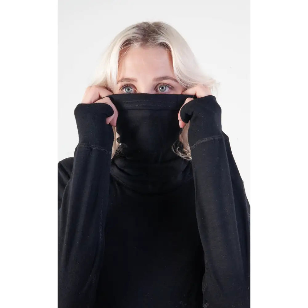 Trekk halsen over hodet og bruk den som hals, halvbalaklava eller opp over nese og kinn når vinden tar. Den tynne, elastiske ribben gjør den lett å justere etter behov.
