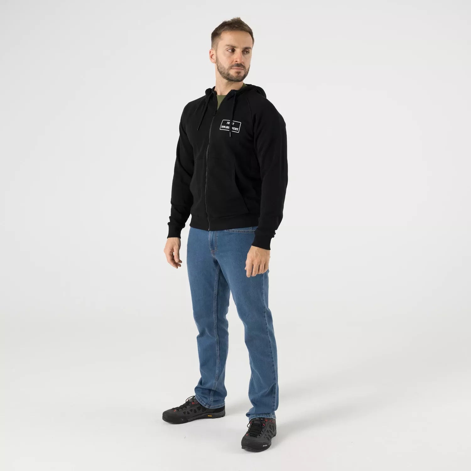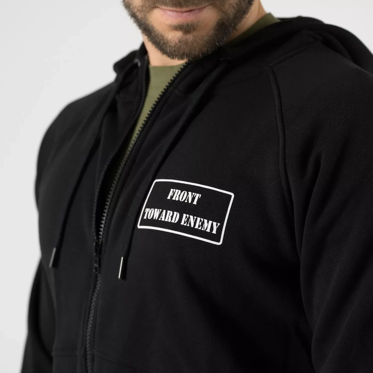 Denne Front Toward Enemy hoodien er en lett og behagelig hettegenser laget for daglig bruk. Den har hel glidelås, justerbar hette og to romslige hoftelommer. Praktisk når du vil ha en enkel genser som funker i byen, på reise og til pendling.
