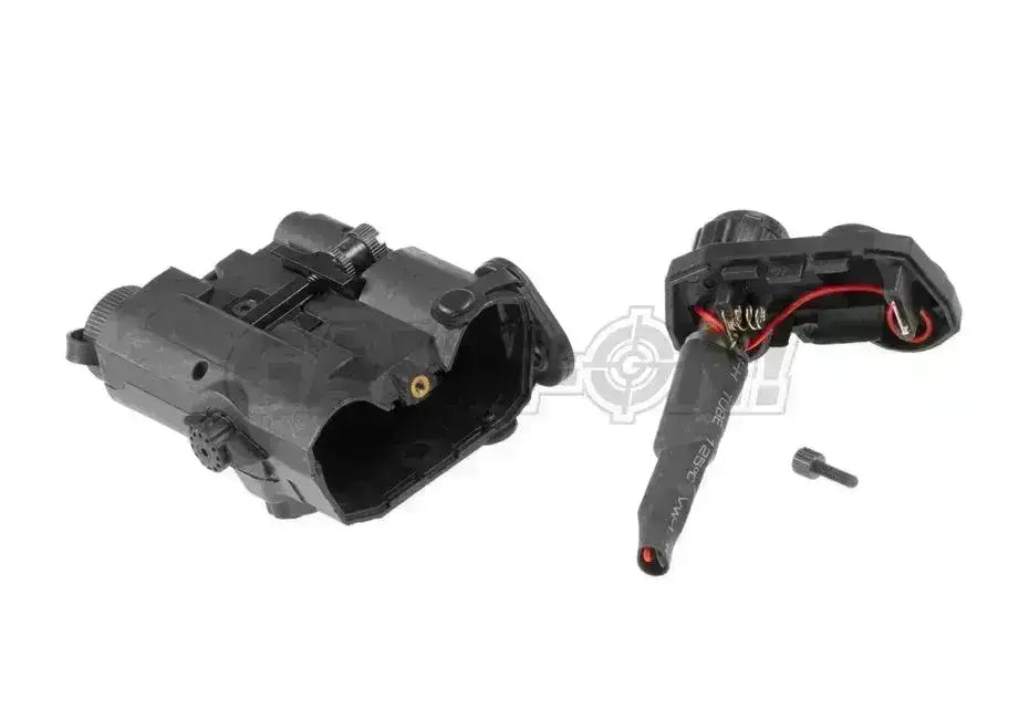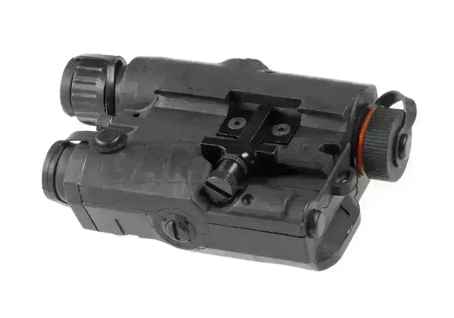 The green laser can be turned on and adjusted in strength by turning the switch on the front.