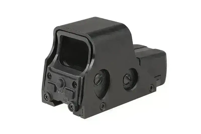 This red dot sight from Theta Optics is a holographic red dot sight often seen on M15/M16 rifles. You can choose between a red or green reticle and is great for use both during the day and at dusk thanks to adjustable brightness. The sight's aiming point can be easily adjusted both vertically and horizontally and is easily attached to the vast majority of 21mm rails. The sight is made with a mixture of polymer and metal, which makes it very durable. The scope is powered by 4 pcs LR44 batteries which are easily fitted into the scope.