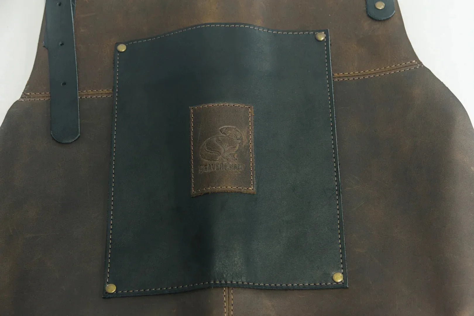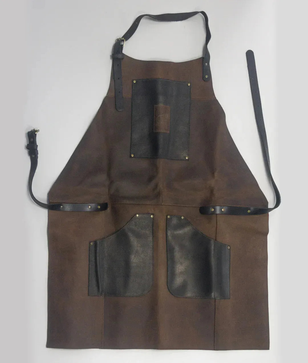 Durable and Stylish Work Apron in Brown and Black Leather – for Creative and Practical Professions