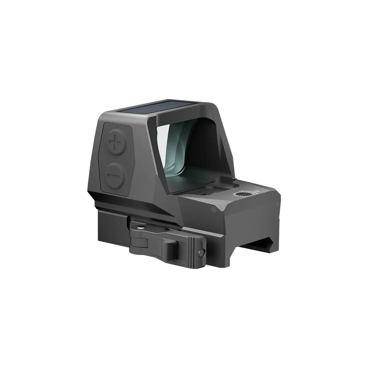 Full-metal red dot sight made of 6061 aluminum with solar panel. The sight is compact and fits perfectly on pistols with MOJ-footprint. The sight comes with a 21mm adapter and is well suited for rifles, pistols, and shotguns.