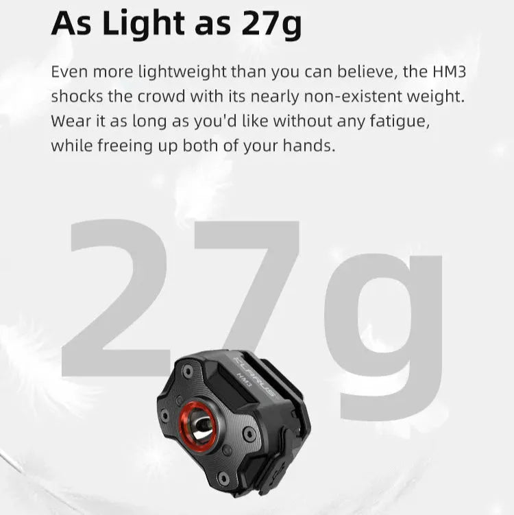 KLARUS HM3 Super Lightweight Headlamp – 670 Lumens for Versatile Use Ultra-Compact and Powerful Headlamp The KLARUS HM3 is an extremely lightweight headlamp, weighing just 27 g, about as light as an egg! Perfect for prolonged use without discomfort, whether it's for running, hiking, camping, or working in the dark. 670 Lumens Brightness with Multiple Modes The headlamp boasts a powerful brightness of up to 670 lumens and four different light modes, ensuring optimal illumination for any situation – whether you're on a trip, mountain hike, or working in poorly lit environments. Red Flashing Mode for Emergencies With a double click, the red flashing mode is activated, serving as a warning light in emergency situations outdoors. Flexible Attachment Mechanism – Not Just a Headlamp The KLARUS HM3 features an innovative 180° adjustable clip design, allowing it to be attached to caps, backpacks, or other places where light is needed.