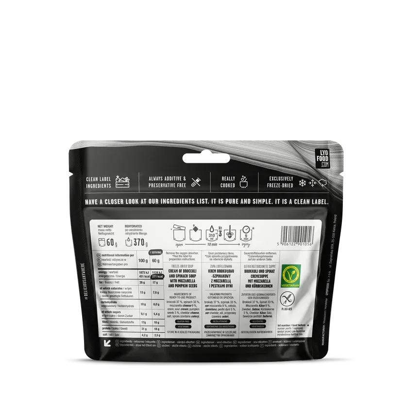 LYOFOOD Creamy Broccoli & Spinach Soup – Gluten-free creamy vegetable soup for outdoor trips