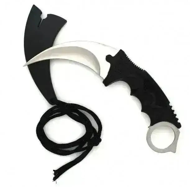 This Karambit knife looks incredibly tough with its matte silver blade and matte handle. Definitely a cool knife for the collection! Sheath included.