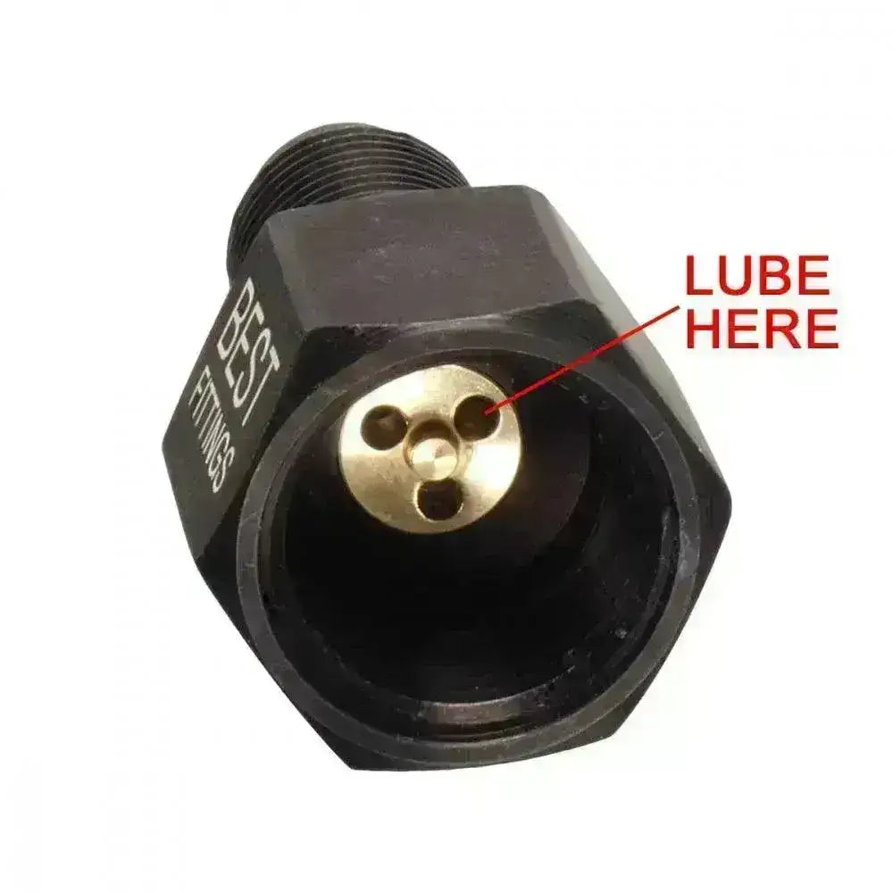 - We recommend one or two drops of silicone oil in one of the holes in the adapter between each fill to maintain the system. DO NOT overfill!