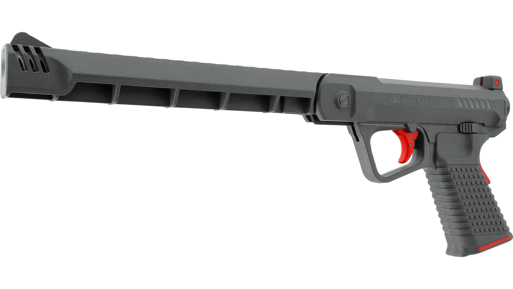 The UX SPA 100 from Umarex is an affordable and solid break-barrel air pistol for those who want to shoot with 4.5mm pellets. This is a simple and safe spring-powered model that offers good precision thanks to a rifled barrel and long sighting radius. Perfect for beginners who want to practice precision shooting in the garden or at the cabin.