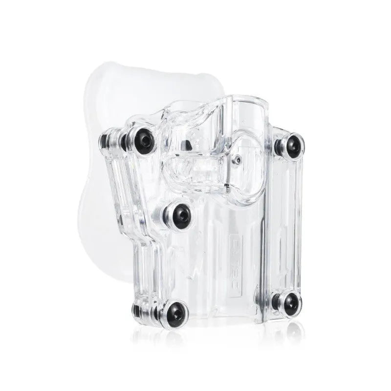 Dieses Universalholster von Cytac besteht aus hochdichtem Polymer für maximale Haltbarkeit und Schutz. Das Holster verfügt über einen Verriegelungsknopf, der die Waffe sicher an ihrem Platz hält.