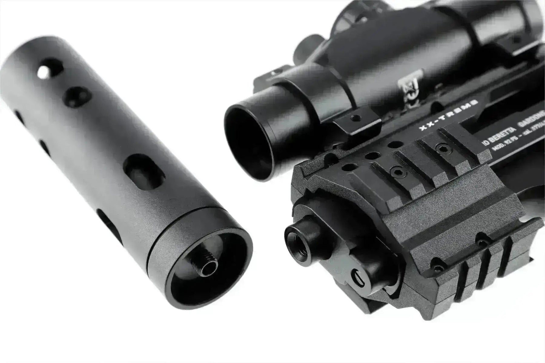 Diese unter Lizenz von Beretta selbst hergestellte M9-Replik ist ein Vergnügen beim Schießen. Sowohl Double- als auch Single-Action-Abzüge sorgen in Kombination mit einem gezogenen Stahllauf für hervorragende Präzision und die Waffe wird mit einer Montageschiene für ein Leuchtpunktvisier und ein Leuchtpunktvisier geliefert. Moderator inklusive.