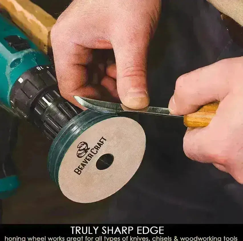 Universal-Messerschärfer für Bohrmaschinen - Lederrad mit 7mm Bitanker