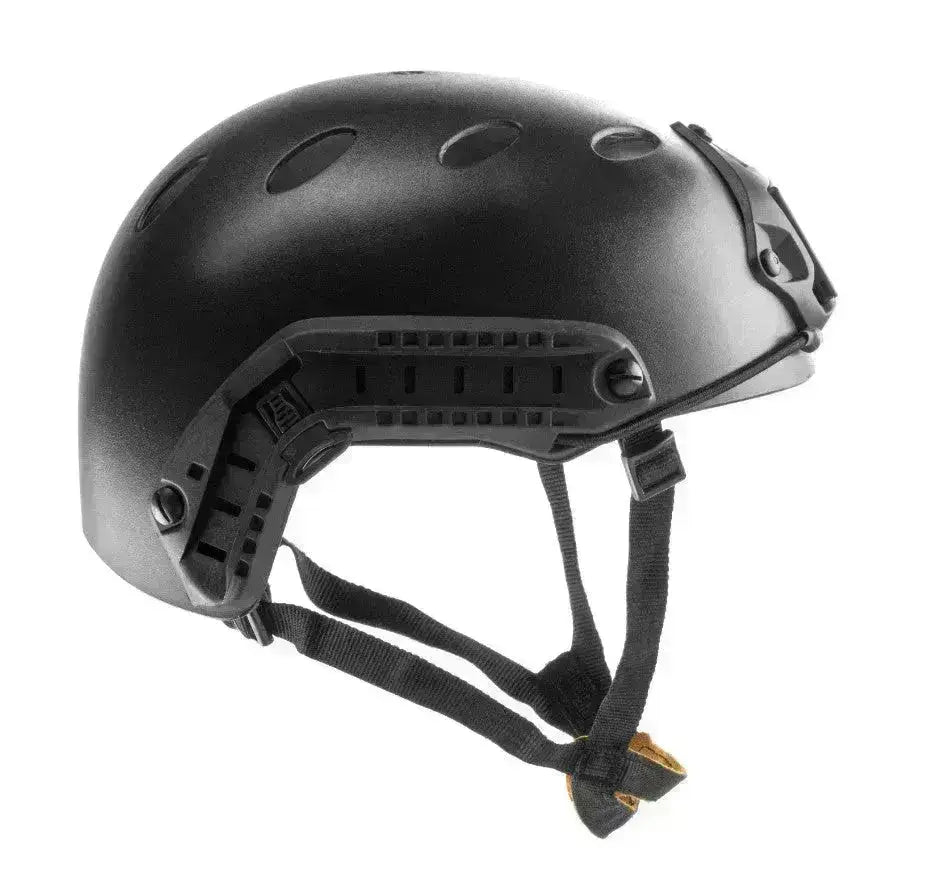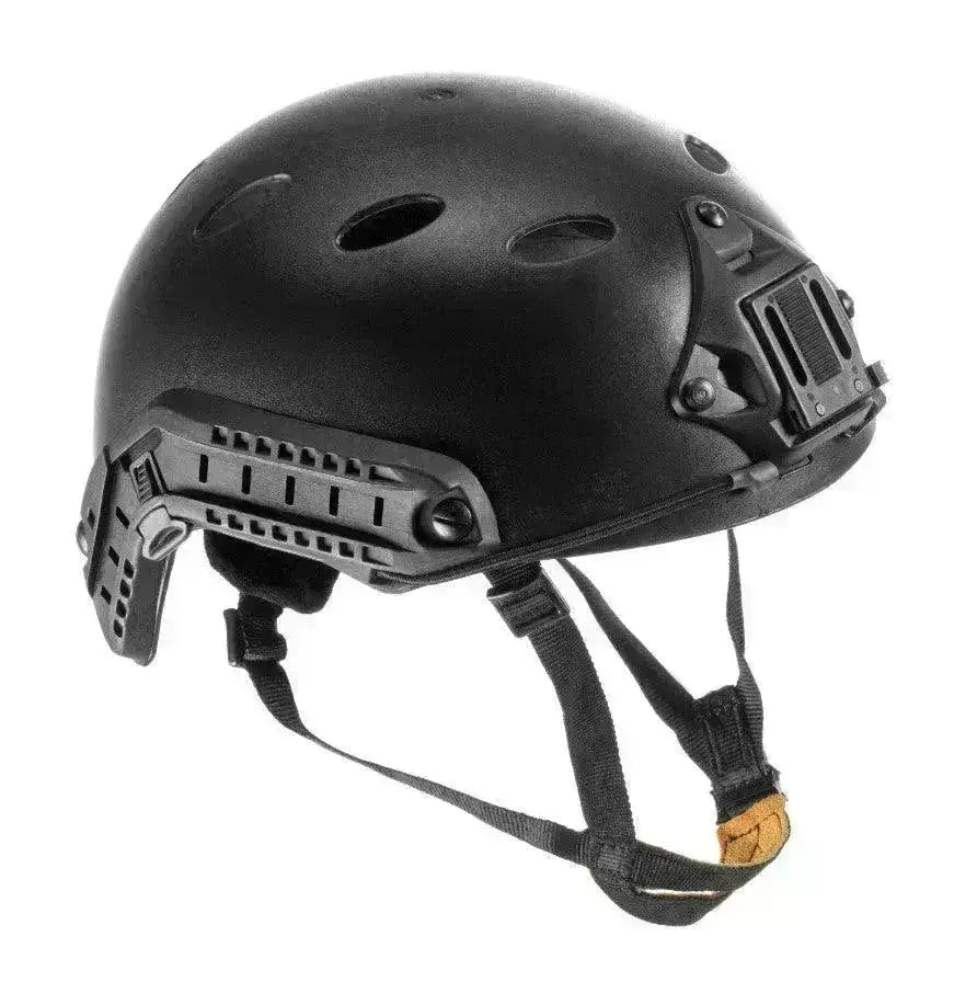 Einfache Nachbildung des berühmten PJ FAST-Helms. Der Helm ist perfekt für Airsoft-Spiele und verfügt über einen verstellbaren Kinnriemen, eine NVG-Halterung und Schienen an den Seiten.