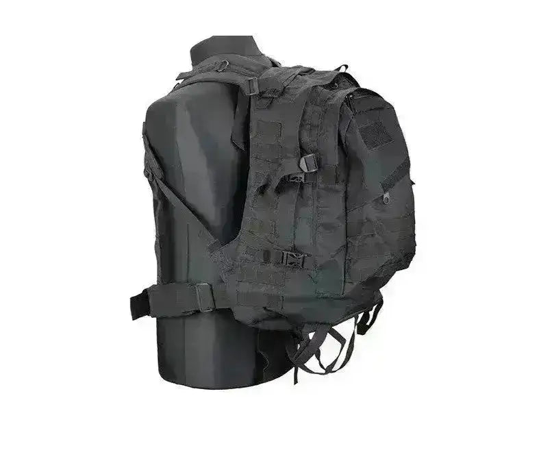 Gute und robuste Tasche mit praktischen Lösungen. Dieser schwarze Militärrucksack Geeignet für Reisen, Schule, Alltag sowie für Airsoft und Paintball. Der Rucksack bietet viel Platz und verstellbare Gurte und einen Bauchgurt sowie MOLLE-Befestigung, sodass Sie zusätzliche Module oder Magazintaschen falls gewünscht.