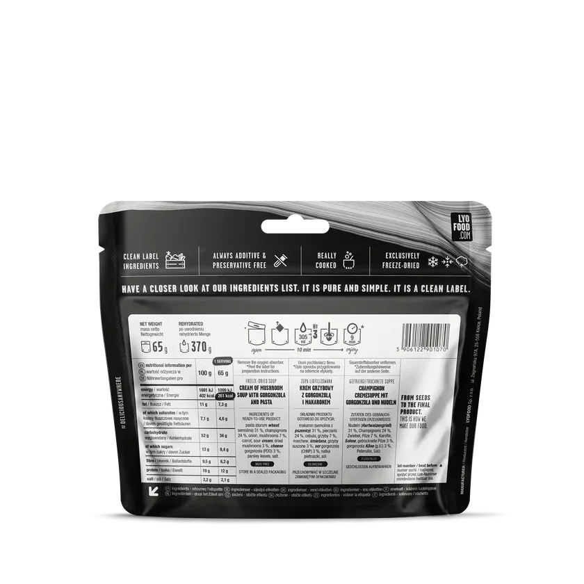 LYOFOOD Cremige Pilzsuppe – Glutenfreie cremige Pilzsuppe für unterwegs