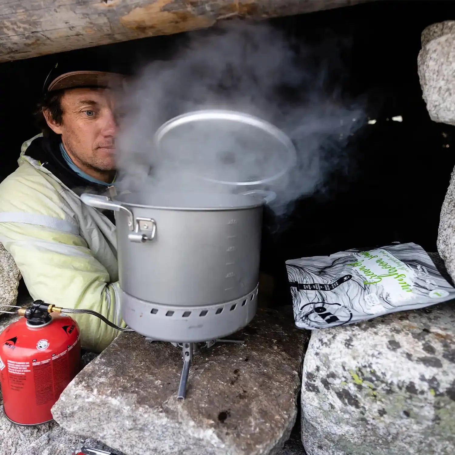 Geben Sie kochendes Wasser direkt in den Beutel, rühren Sie gut um und warten Sie 6–8 Minuten. Genießen Sie überall auf Ihrer Reise eine reichhaltige und wärmende Pilzsuppe.