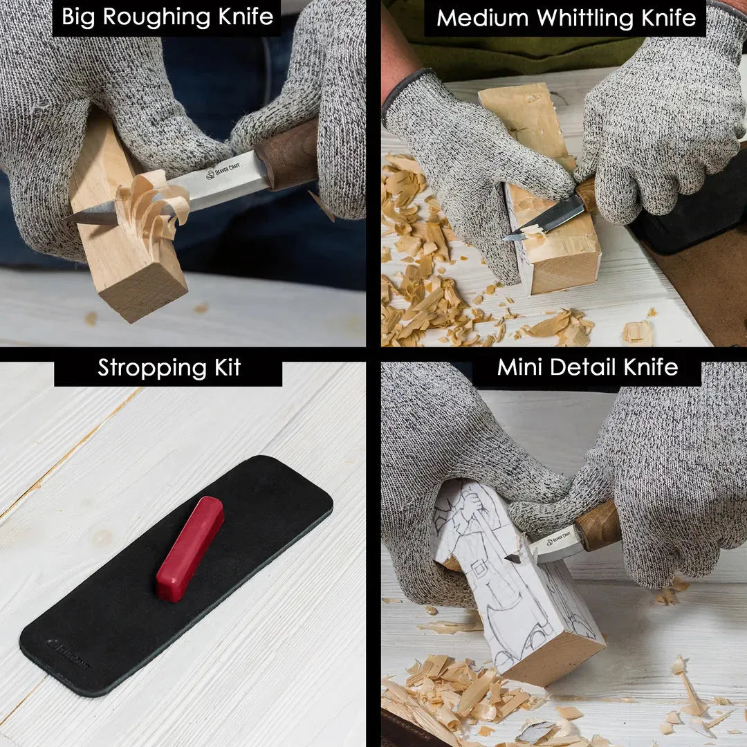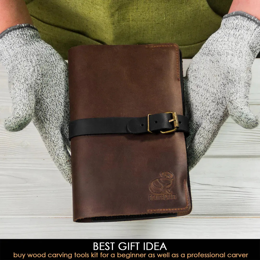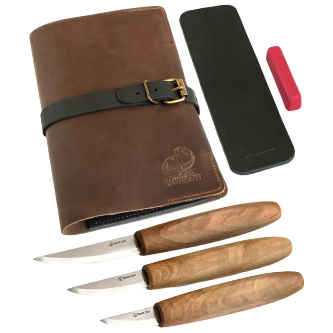 Komplettes Holzschnitzset von Beaver Craft aus der Ukraine – Wird in einem schönen Etui aus echtem Leder geliefert