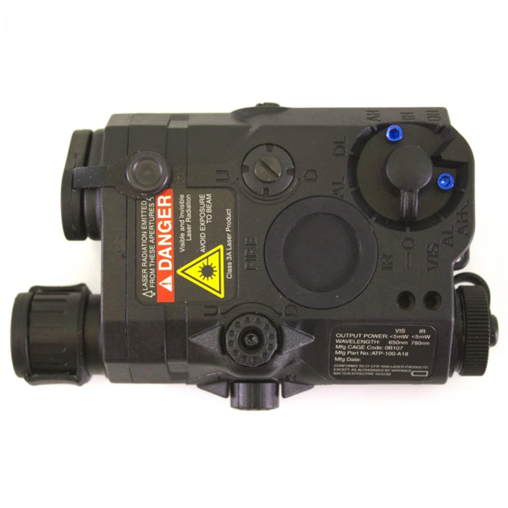 Dieser Laser wird mit einem abnehmbaren Druckpolster, einem integrierten roten Laser und einem IR-Laser für die Verwendung mit Nachtoptiken geliefert. Es verfügt außerdem über eine starke CREE-LED-Taschenlampe.