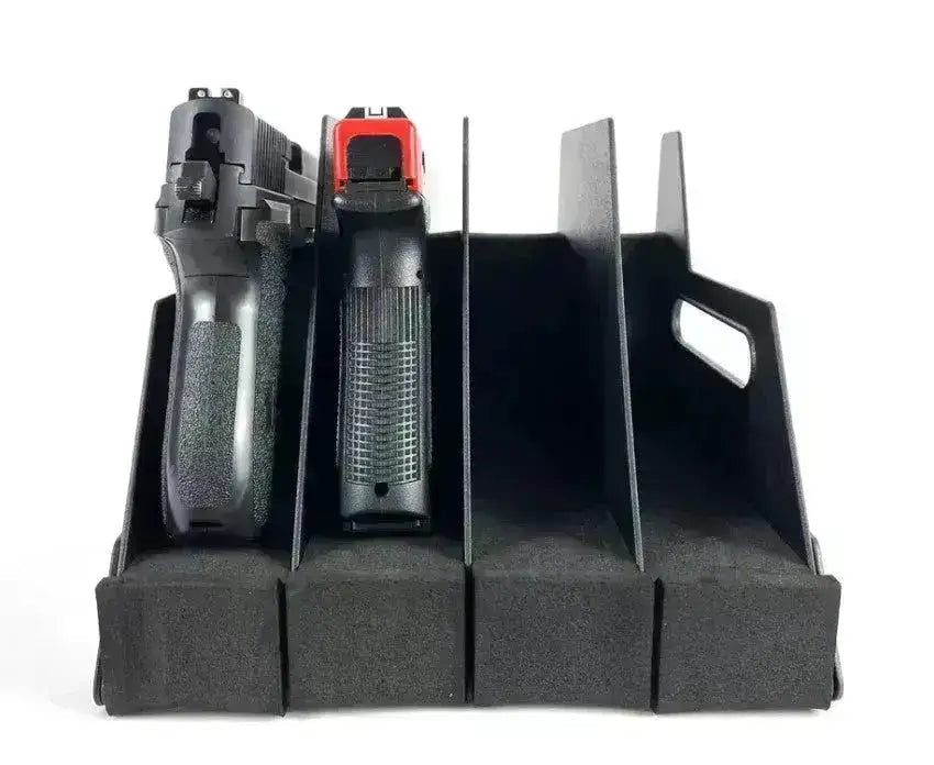 Aufbewahrung/Ausstellung für Ihre Waffennachbildungen! Bietet Platz für 4 oder 8 Pistolen und besteht aus Metall und Schaumstoff.