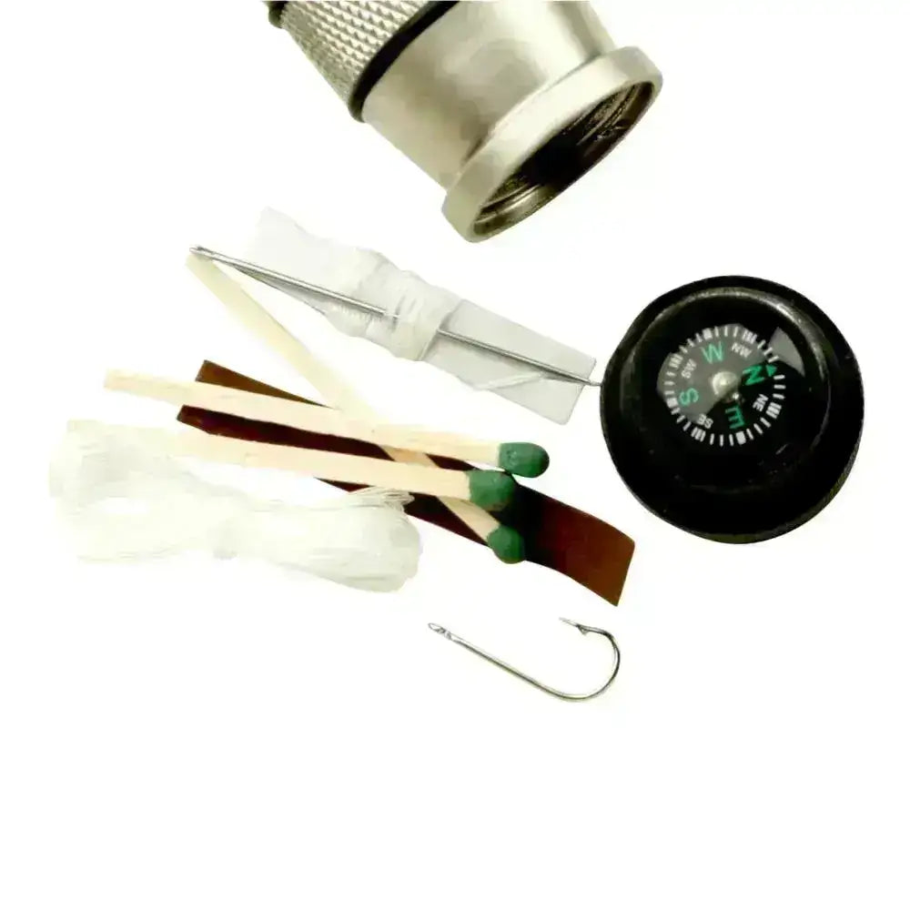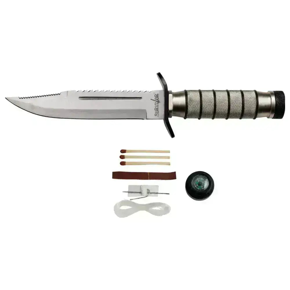 Für zusätzliche Sicherheit in der Wildnis sorgt das mitgelieferte Survival-Kit. Das Messer ist sicher in einer schwarzen Nylonscheide aufbewahrt, die einfachen Zugriff ermöglicht und sowohl den Benutzer als auch die Klinge schützt.
